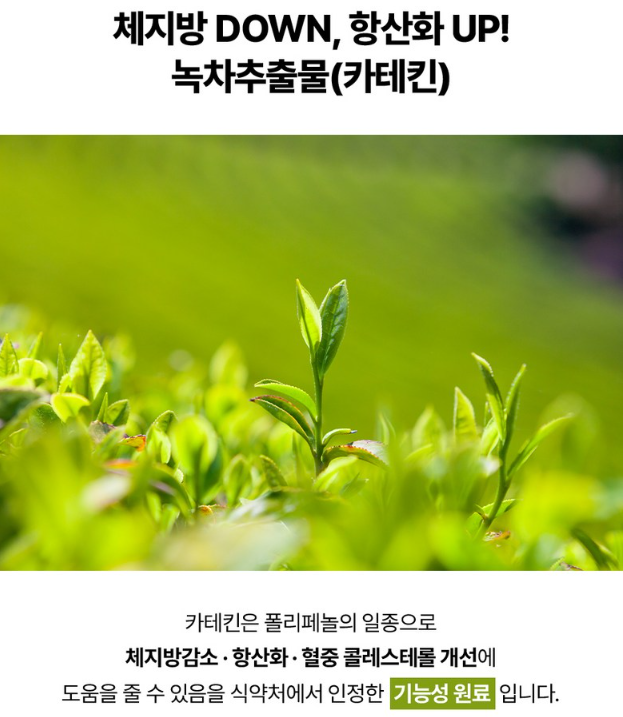 - 녹차 추출물: 항산화 효과와 지방 연소 촉진