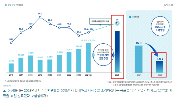 - 자사주 소각: 현재 보유 중인 자사주 비중(15.93%)을 2028년까지 5% 미만으로 축소.