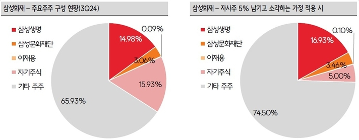 삼성생명은 삼성화재 지분 14.98%를 보유한 최대주주로, 삼성화재가 자사주를 소각하면 지분율이 약 16.93%로 상승하게 됩니다. 이는 보험업법상 허용치(15%)를 초과하므로, 삼성생명은 두 가지 선택지를 검토해야 합니다.