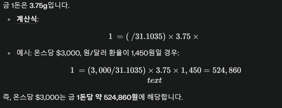 - 금 1돈 가격: 같은 조건에서 계산하면 금 1돈(3.75g)은 약 506,000원 정도로 추정됩니다.