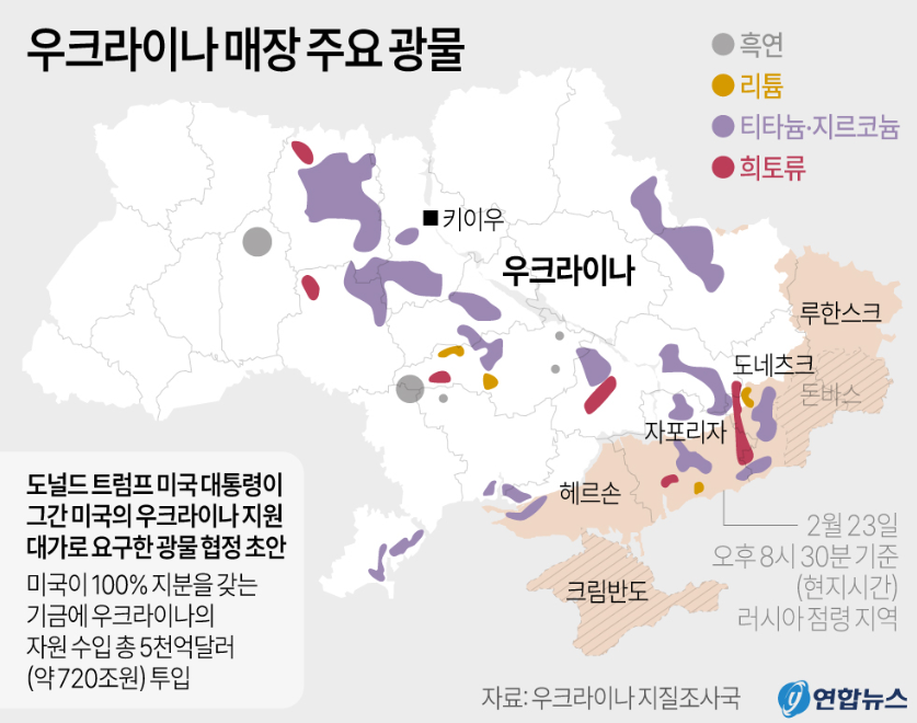 - 희토류 자원 개발: 우크라이나는 유럽 최대의 리튬, 티타늄, 흑연 매장량을 보유하고 있으며, 이는 전기차와 배터리 산업의 핵심 원료입니다. 미국은 이미 '핵심 광물 자원 개발을 위한 포괄적 협정'을 우크라이나와 체결하기 위한 논의를 시작했습니다.