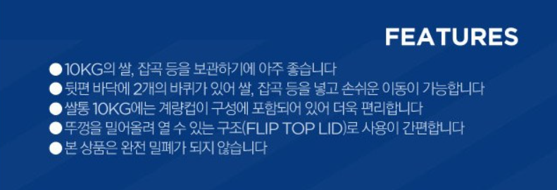 이 제품은 10kg 또는 12리터의 대용량을 자랑하여, 대가족이나 자주 쌀을 사용하는 가정에 이상적입니다. 넉넉한 용량 덕분에 한 번에 많은 양의 쌀을 보관할 수 있어, 자주 구매할 필요 없이 경제적으로 이용할 수 있습니다.