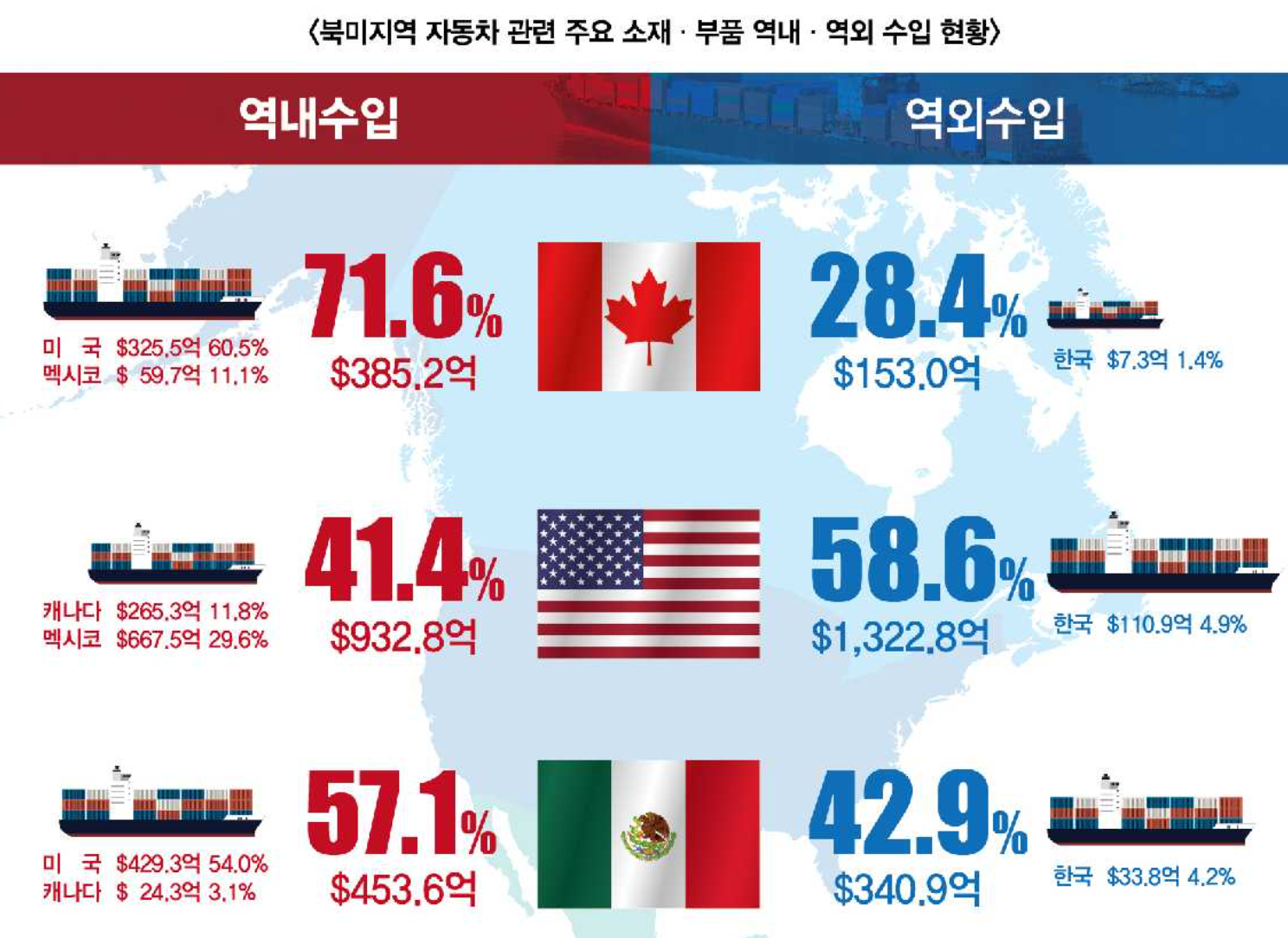 - 철강 및 알루미늄 요건: 자동차에 사용된 철강과 알루미늄의 일정 비율이 북미산이어야 합니다.